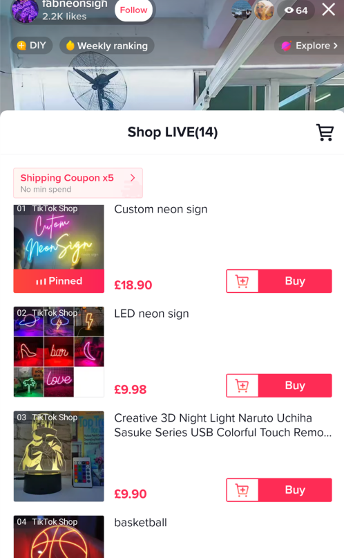 可以看到生产车间里有各种LED霓虹灯带,这些都是他们的产品,给走进直播间的每一位网友带来的第一感觉,就是这个直播间是LED霓虹灯带的生产厂家,一手货源,没有中间商赚差价,量大量小都可以咨询与下单。