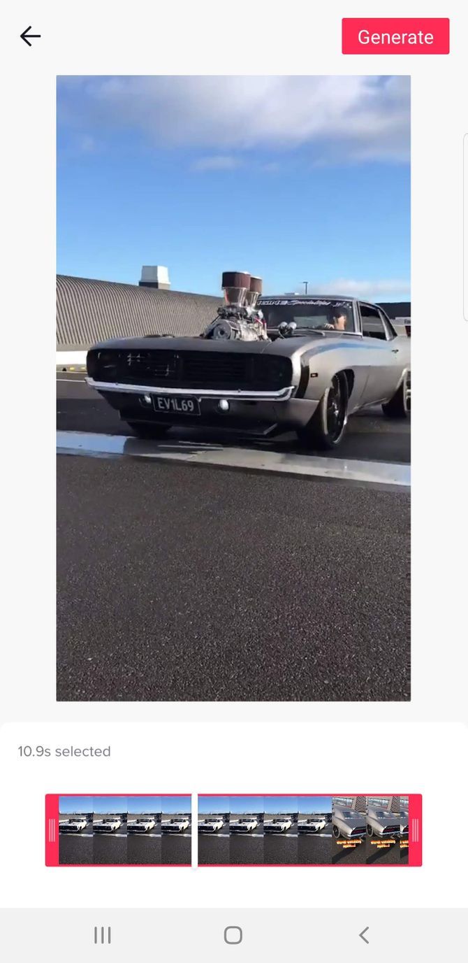 选择该选项后,TikTok 会将您定向到一个屏幕以编辑 GIF 的长度。完成后选择生成以创建 GIF。然后,您可以在各种社交媒体平台上分享它,甚至可以通过短信分享。